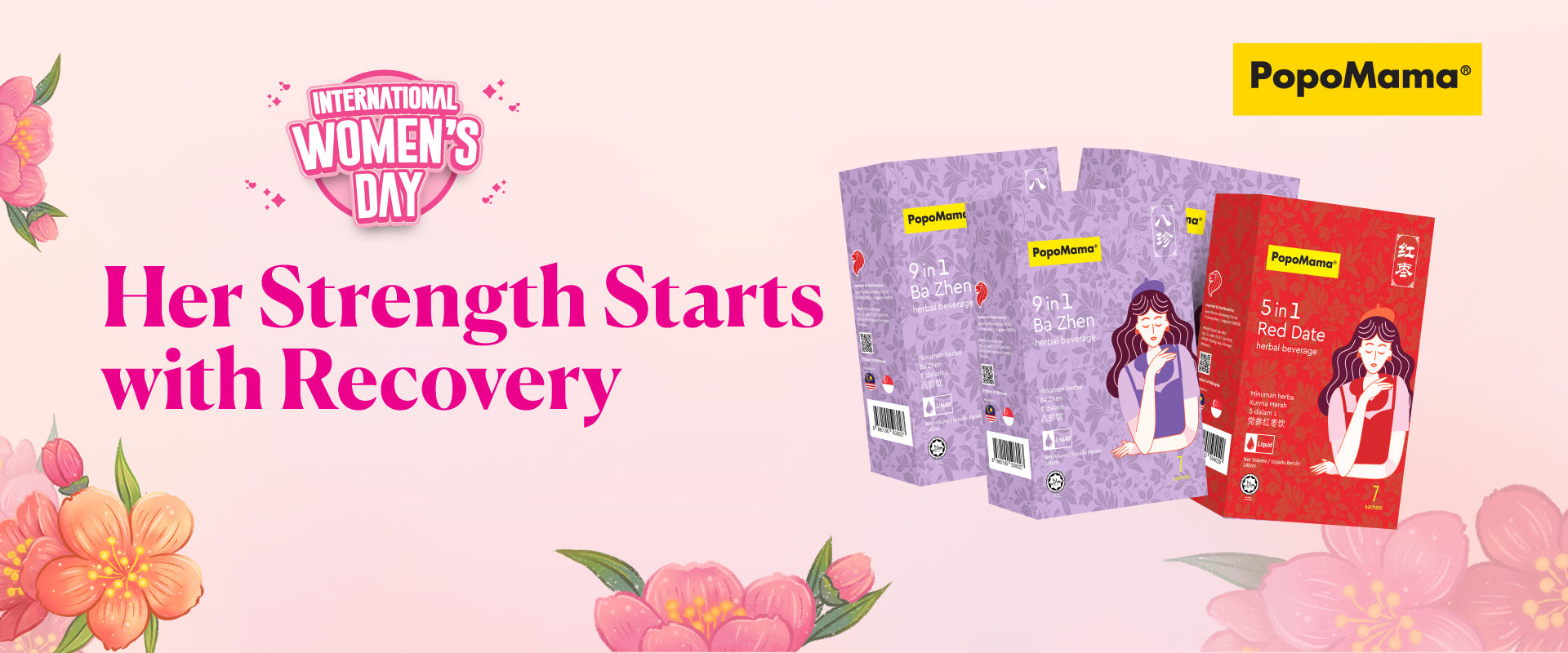 Enjoy the rich benefits of our 5-in-1 Red Date and 9-in-1 Ba Zhen herbal beverages. Thoughtfully crafted for women, each drink supports vitality, balance, and monthly wellness in your daily routine. A simple, comforting way to care for your body from within.
