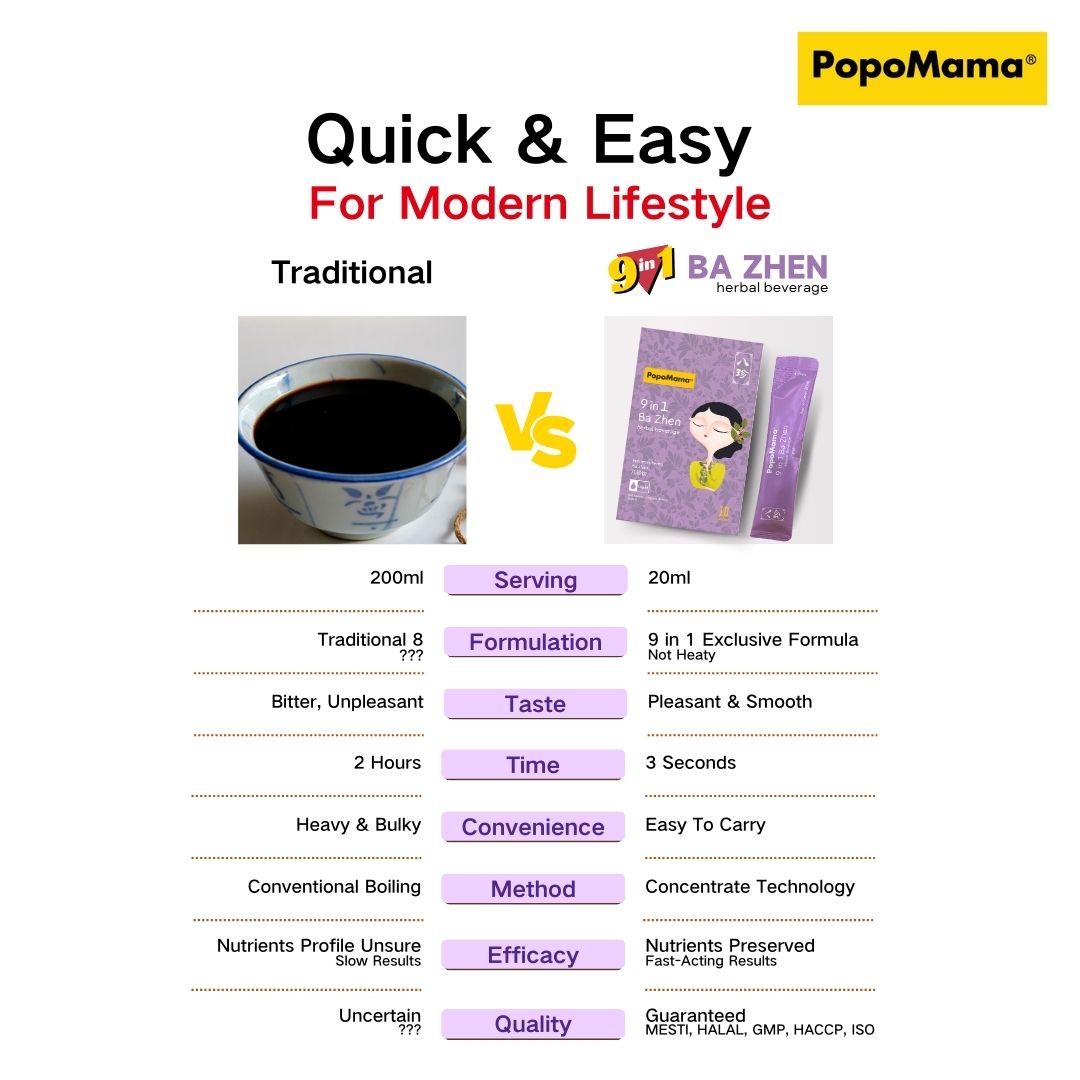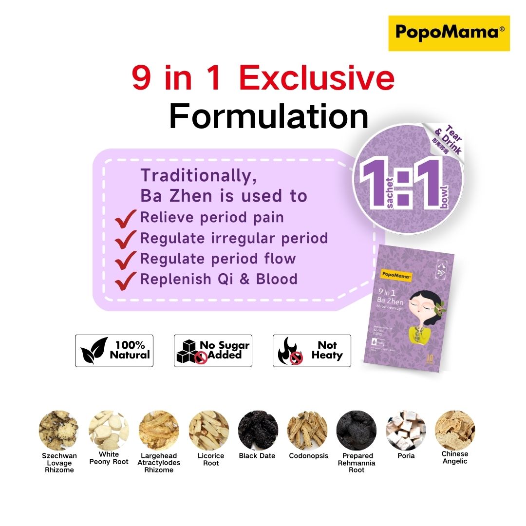 For those who have enjoyed the benefits of Ba Zhen soup during period but find it time-consuming and cumbersome to source the herbs and ingredients, PopoMama offers convenient sachet packs that provide the same nourishing benefits as Ba Zhen soup in Malaysia.